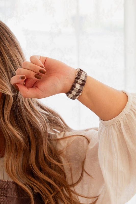 Brown Gingham Scrunchie Band Compatible with Apple Watch