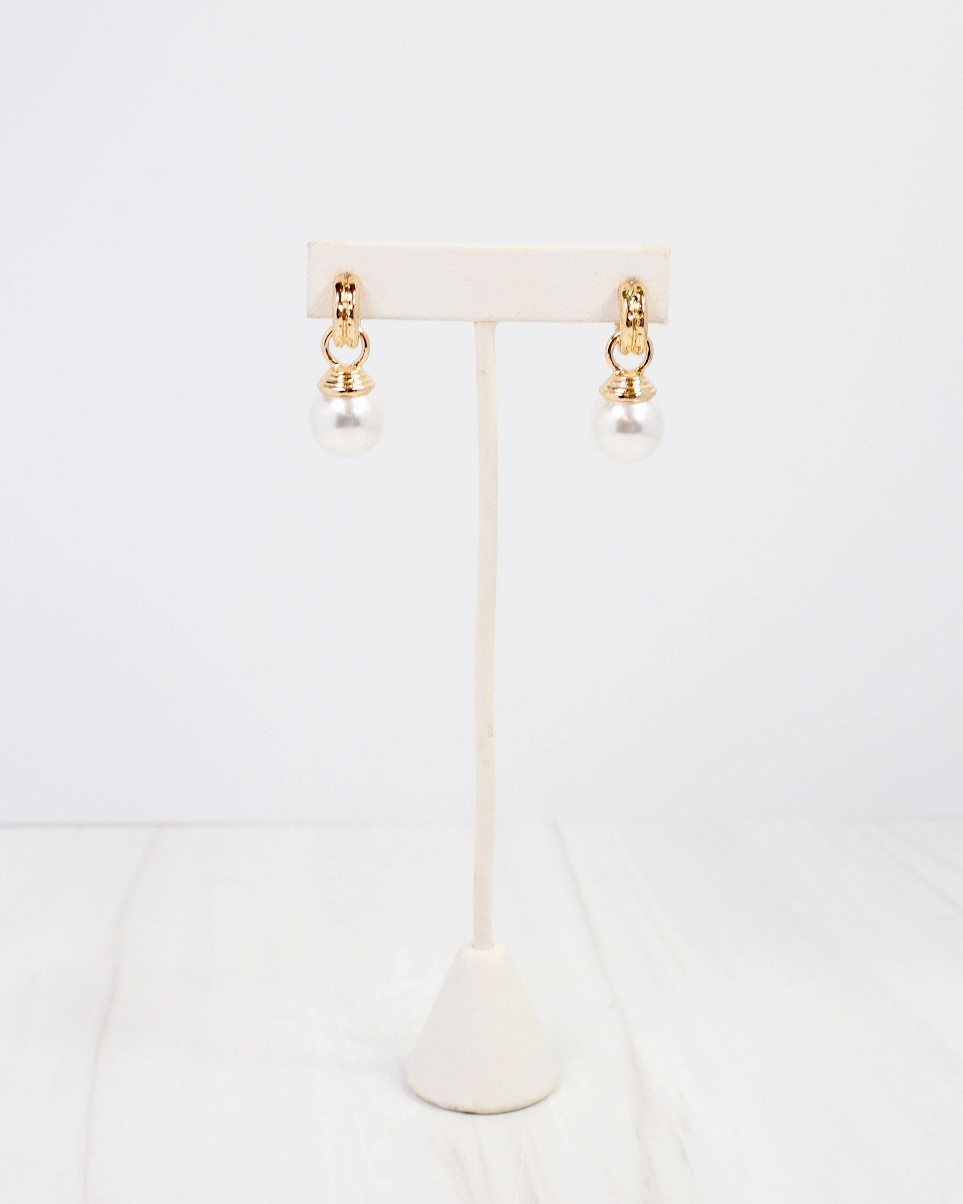 Add instant charm to your everyday look with these pearl dangle hoop earrings. Lustrous pearls suspended from classic gold hoops create an effortless blend of sophistication and playful style. Perfect for adding a touch of elegance to any outfit, whether you're heading to the office or out for the evening. A versatile essential that works with everything in your wardrobe.